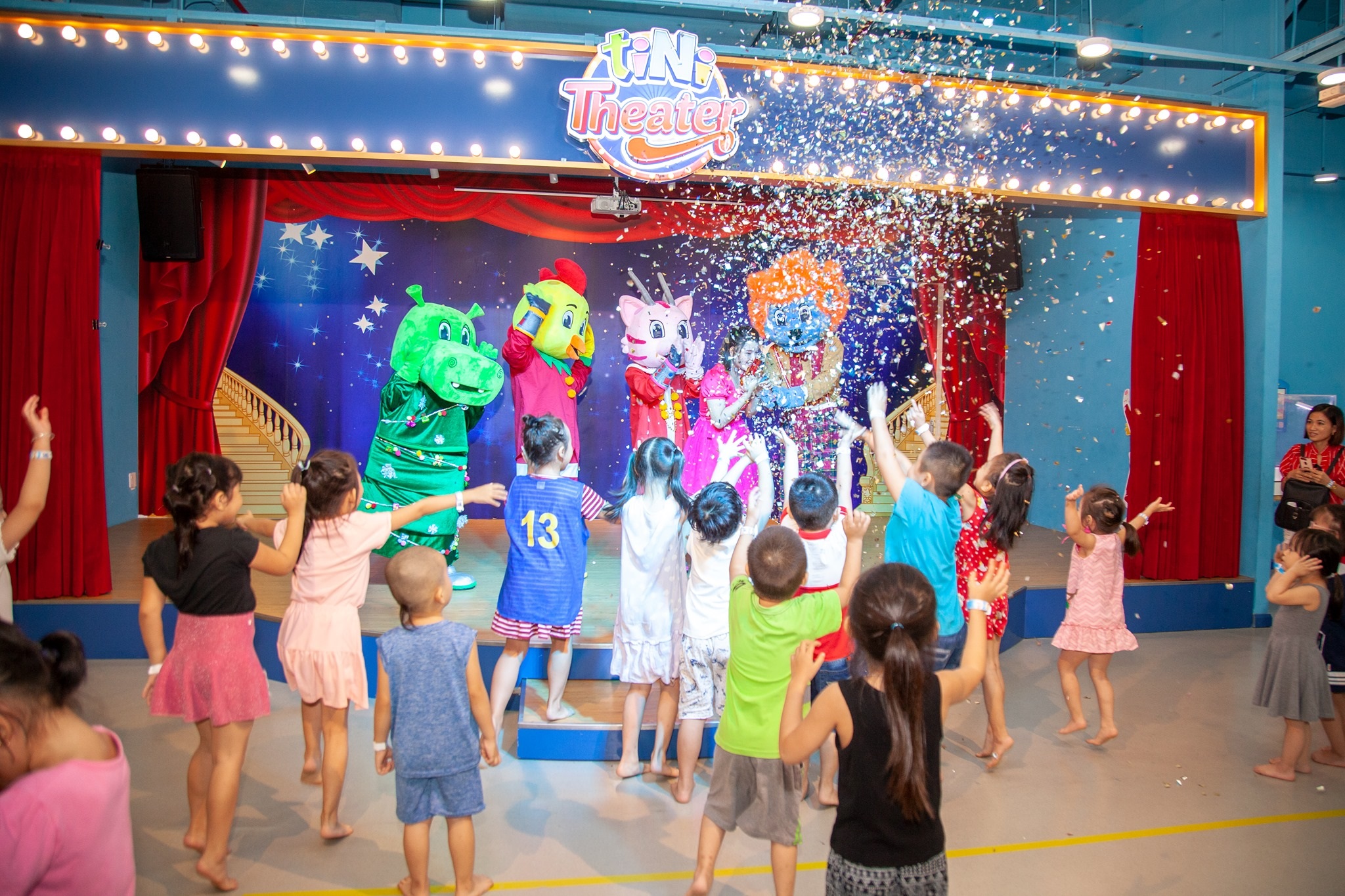 - Trước: Một gia đình ngồi chung, các bé háo hức nhìn sân khấu.