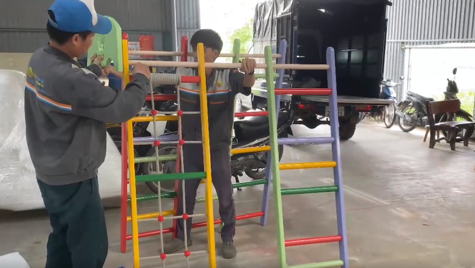 ✅ Thiết bị được sản xuất theo tiêu chuẩn quốc tế EN1176, đảm bảo chất lượng, chịu lực tốt, không gây hại cho trẻ.