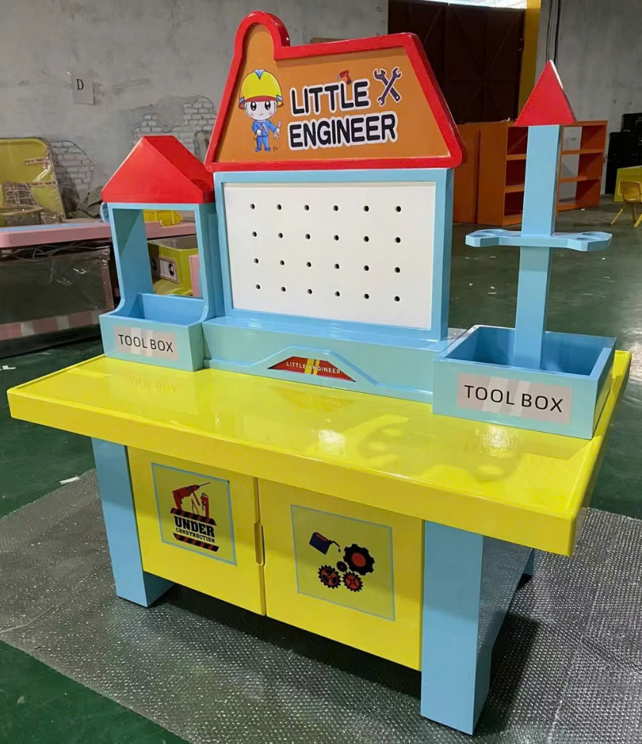 - Bàn kỹ sư tạo môi trường hướng nghiệp từ sớm, giúp bé tìm hiểu về lĩnh vực cơ khí, kỹ thuật, xây dựng.