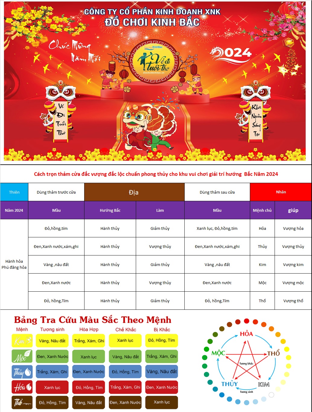 Bảng tra cứu mầu Thảm trải cửa Đắc lộc đắc tài chuẩn phong thủy cho khu vui chơi giải trí Hướng Bắc Năm 2024