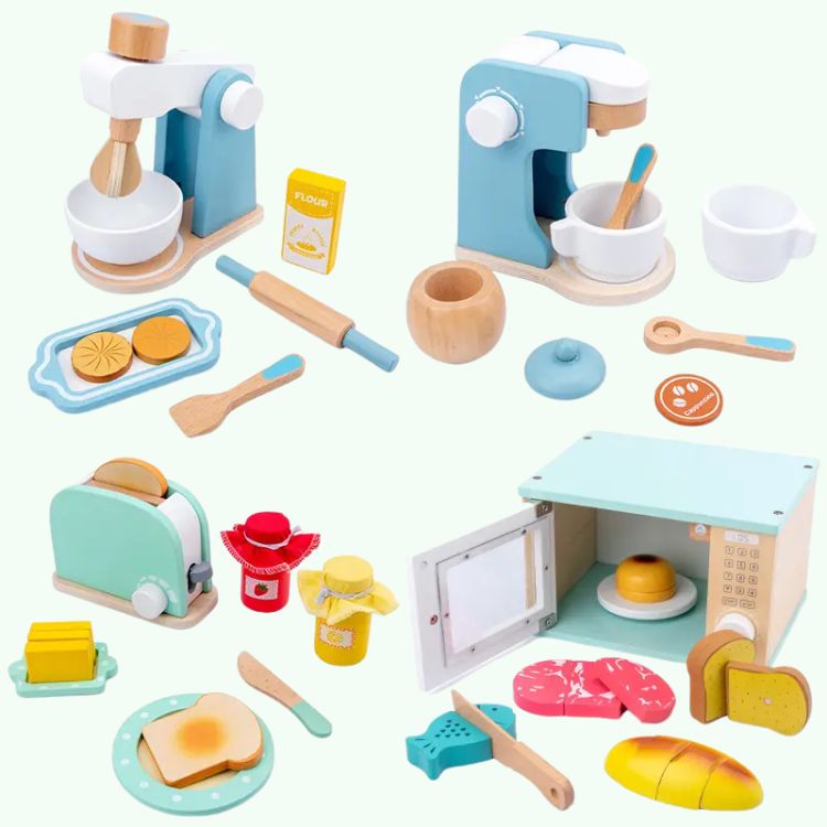 ✔ Lò vi sóng, máy nướng bánh, máy xay sinh tố, máy pha cà phê giúp bé nhập vai như một đầu bếp thực thụ.