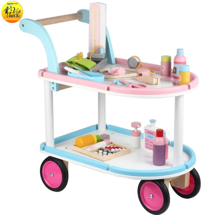 Xe đẩy y tế tiện dụng: Giúp bé có thể di chuyển dụng cụ y tế linh hoạt, tạo sự hứng thú khi chơi. Xe được thiết kế chắc chắn, có bánh xe di chuyển dễ dàng, giúp bé hóa thân thành bác sĩ một cách chân thực hơn.