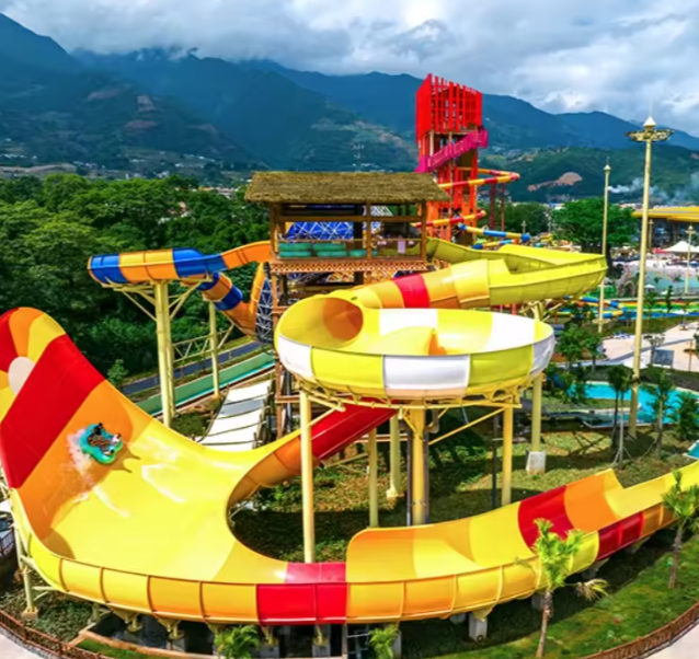 Máng trượt nước ngoài trời đang được nhiều đơn vị ứng dụng trong các mô hình như: