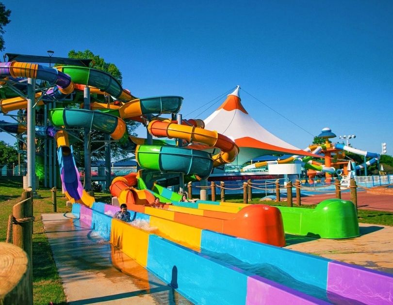 - Đường trượt: 3–5 làn, gồm cả trượt ống xoắn, trượt thẳng tốc độ cao và trượt đôi cạnh tranh