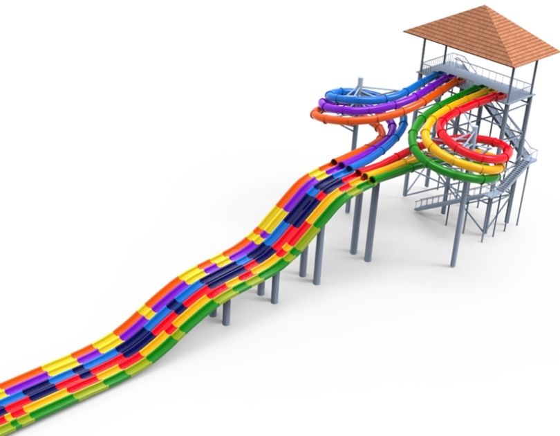 - Đường trượt: 3–5 làn, gồm cả trượt ống xoắn, trượt thẳng tốc độ cao và trượt đôi cạnh tranh
