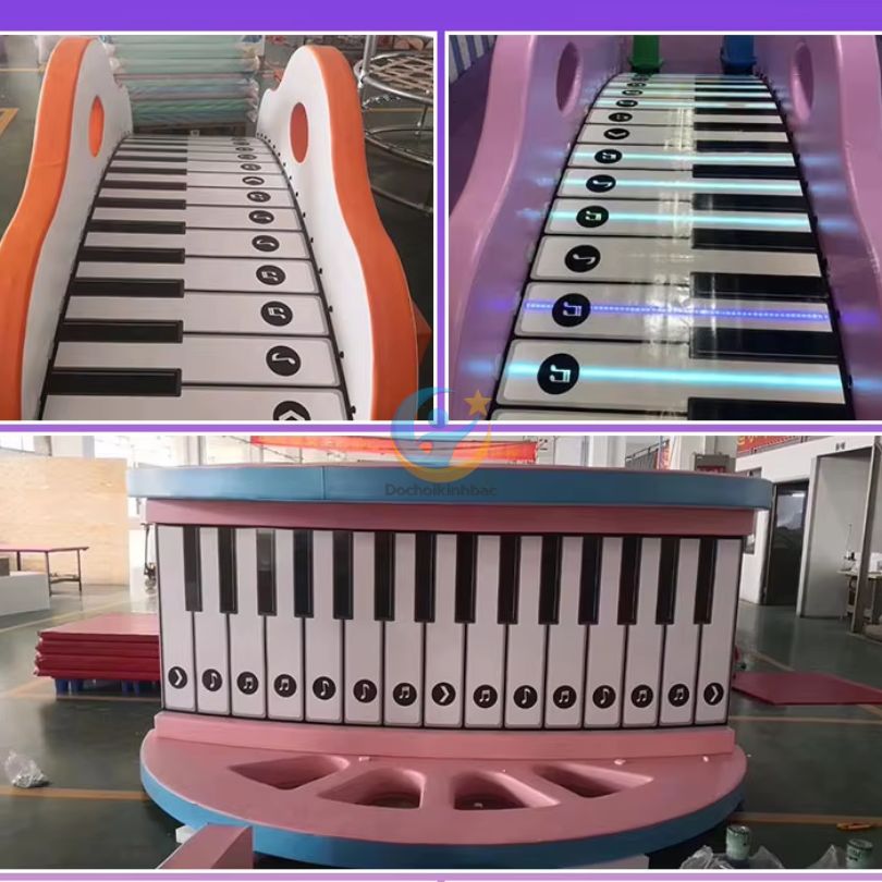 Cầu trượt đàn piano trẻ em là một trong những thiết bị sân chơi trong nhà độc đáo và sáng tạo nhất hiện nay. Thiết kế như một bàn phím khổng lồ với các nốt nhạc vang lên mỗi khi bé bước lên – sản phẩm không chỉ tạo niềm vui vận động mà còn giúp bé làm quen với âm thanh, phát triển khả năng cảm âm và phản xạ.