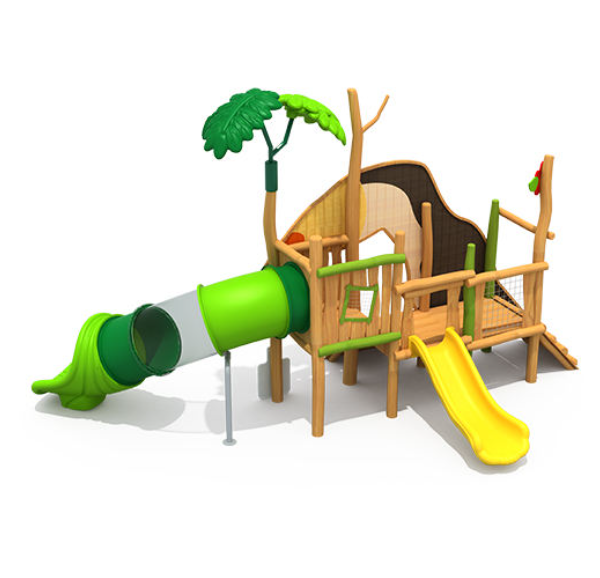 Cầu trượt liên hoàn gỗ được chế tác từ gỗ tự nhiên cao cấp (thường là gỗ thông, gỗ cao su hoặc gỗ tràm đã xử lý kỹ chống cong vênh, mối mọt). Kết cấu gồm nhiều khu vực liên kết với nhau, tạo thành một tổ hợp vui chơi thông minh: