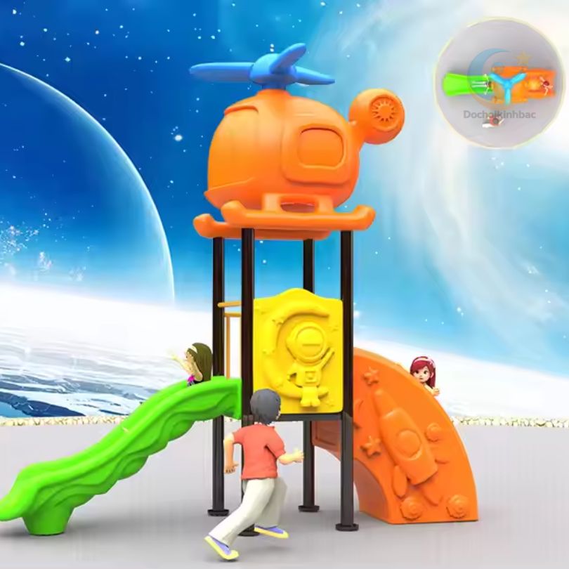 Cầu trượt trẻ em bằng nhựa LDPE là thiết bị khu vui chơi không thể thiếu trong các trường mầm non, khu vui chơi trẻ em, sân chơi gia đình hay trung tâm giáo dục sớm. Với thiết kế mô hình trực thăng và chủ đề vũ trụ đầy màu sắc, sản phẩm mang đến trải nghiệm vận động hấp dẫn và an toàn cho các bé từ 2 đến 8 tuổi.