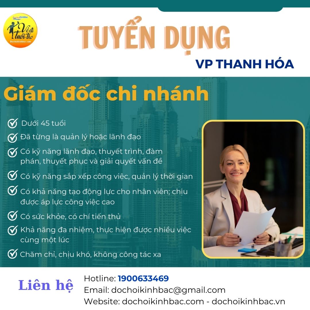 CẦN TUYỂN GIÁM ĐỐC CHI NHÁNH VP THANH HÓA
