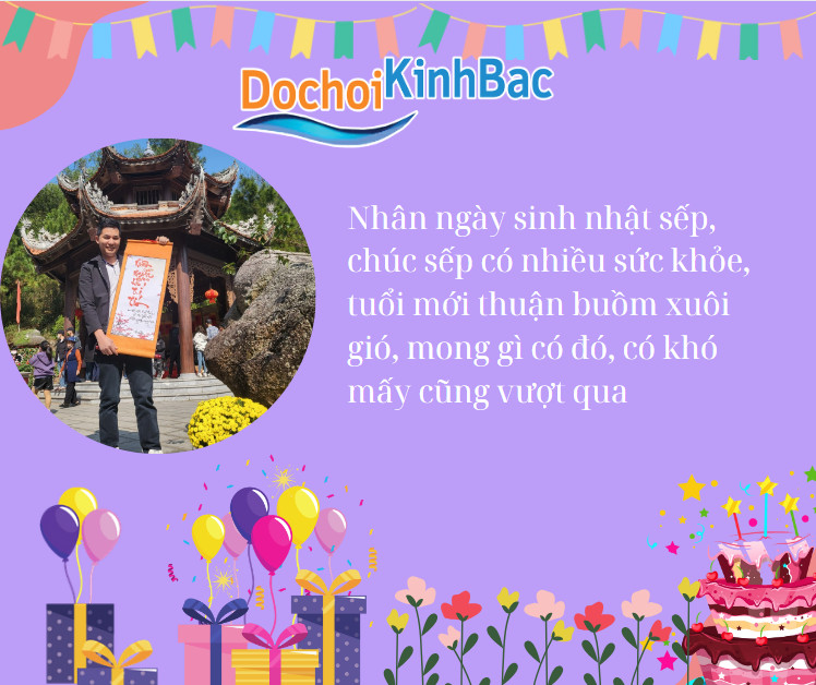Nhân ngày đặc biệt hôm nay toàn thể cán bộ công nhân viên công ty Đồ chơi Kinh Bắc chúc sếp tuổi mới thêm nhiều sức khỏe, luôn luôn vui vẻ, thêm thành công mới, sự nghiệp tiến triển, vạn sự như ý sếp nhé.
