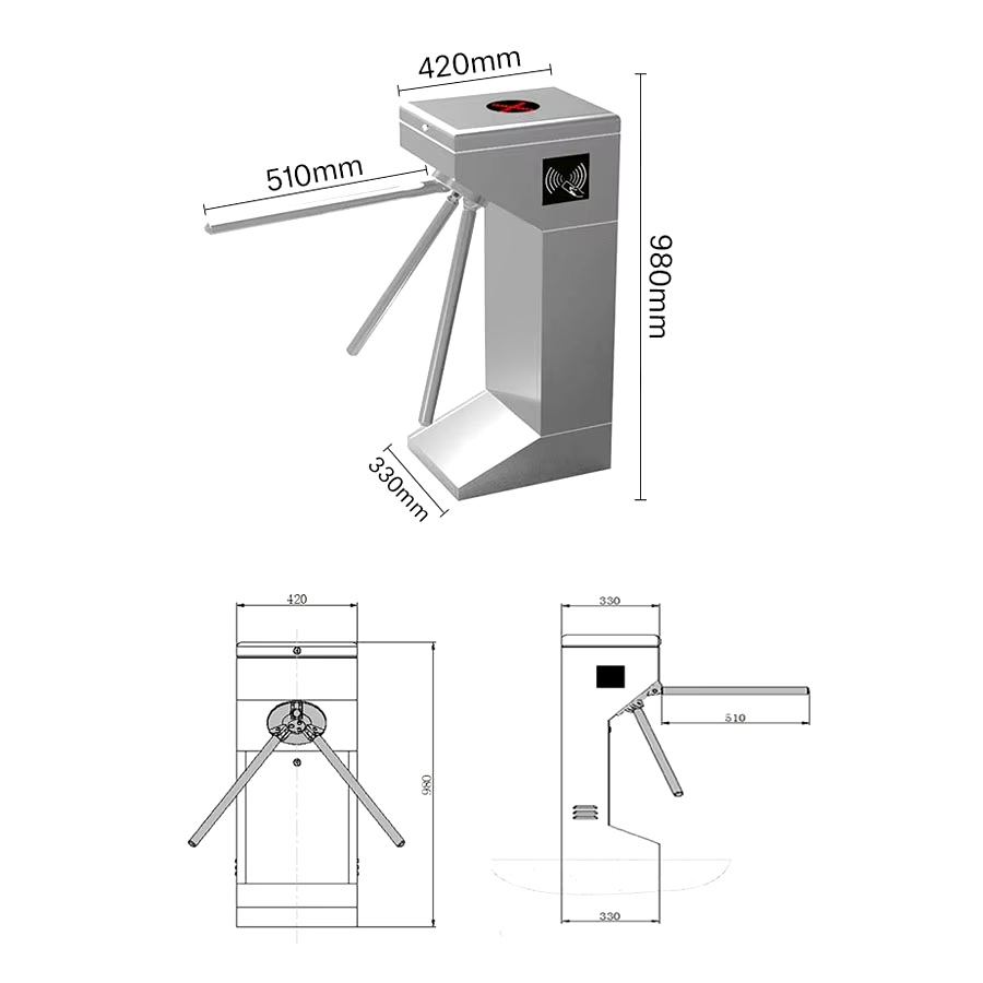 - Cơ chế chặn 3 chấu giúp kiểm soát từng lượt khách qua cổng, giảm thiểu tình trạng chen lấn và tăng cường độ an toàn.