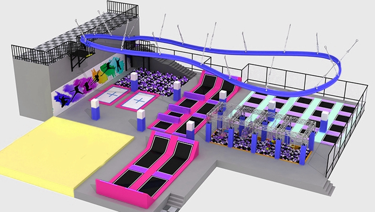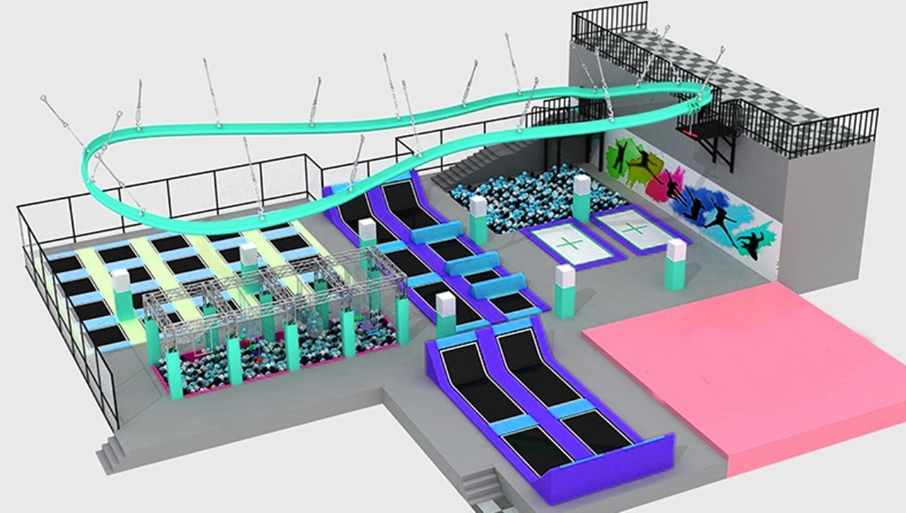 Trampoline park là khu vui chơi bạt nhún trong nhà tiêu chuẩn quốc tế, tích hợp đa dạng các trò chơi và hoạt động trên bạt nhún, cùng những trò chơi vận động như léo núi, vượt chướng ngại vật,…