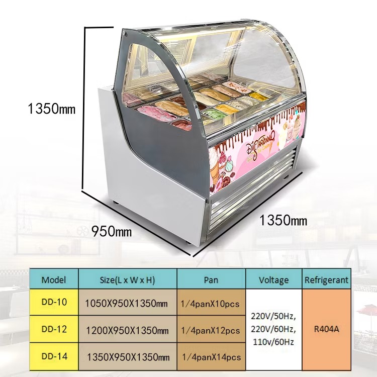 Tủ đông trưng bày kem này được khuyến khích sử dụng cho các khu vui chơi giải trí, tiệm bánh, quán cà phê, nhà hàng, khách sạn, trường học, siêu thị, cửa hàng trái cây, cửa hàng tiện lợi, v.v.