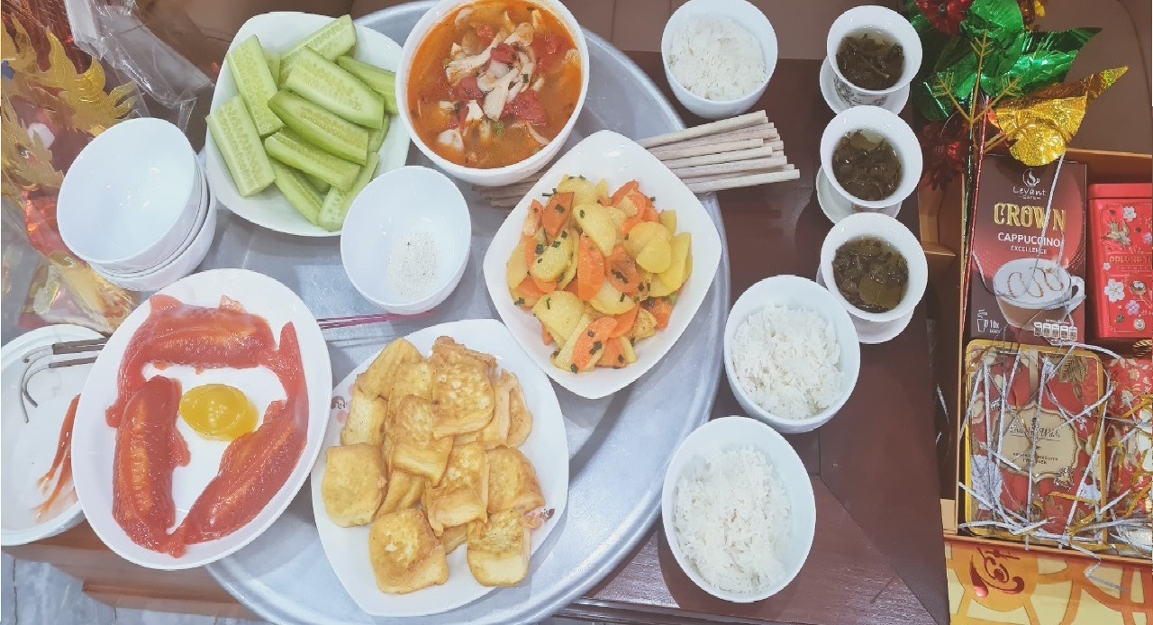- Nơi đặt mâm cỗ: Bàn thờ Táo Quân hoặc bàn thờ gia tiên, không đặt ở bếp.