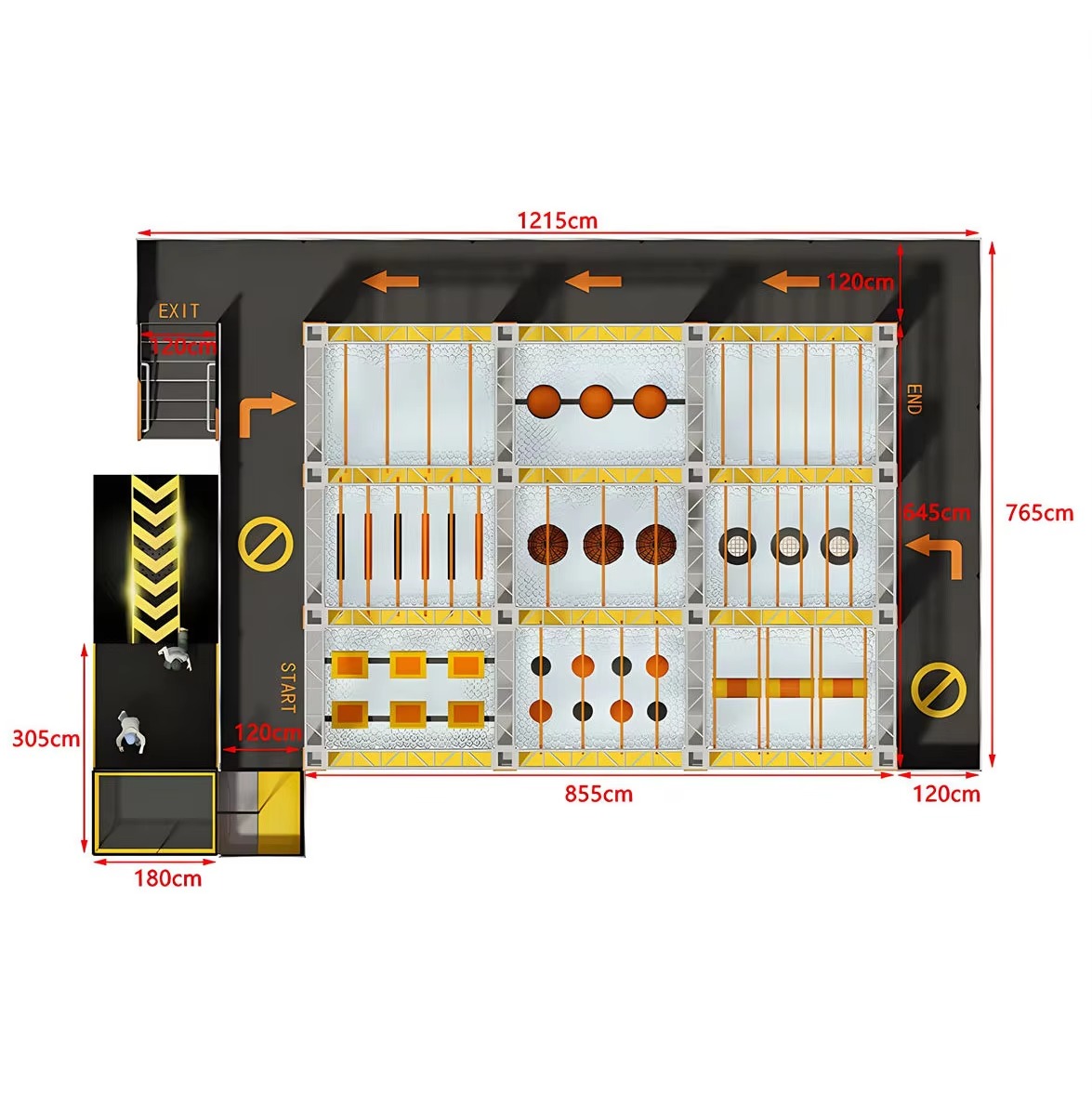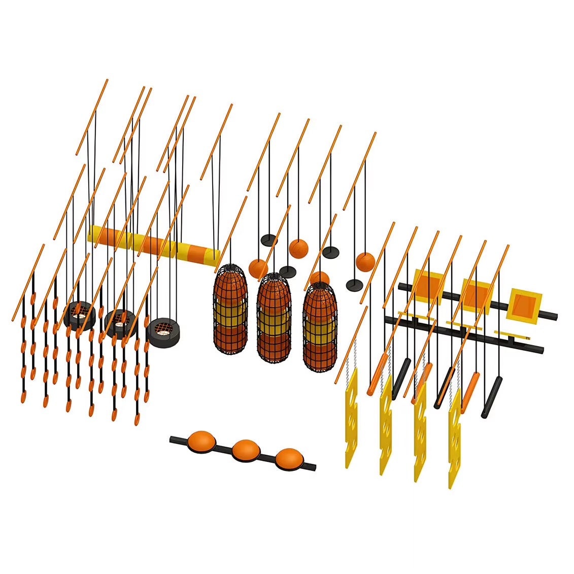 Cấu trúc đa dạng: Bao gồm các thử thách như cầu thăng bằng, leo dây, xà đơn, tường cong, vượt dốc,… phù hợp với mọi độ tuổi.