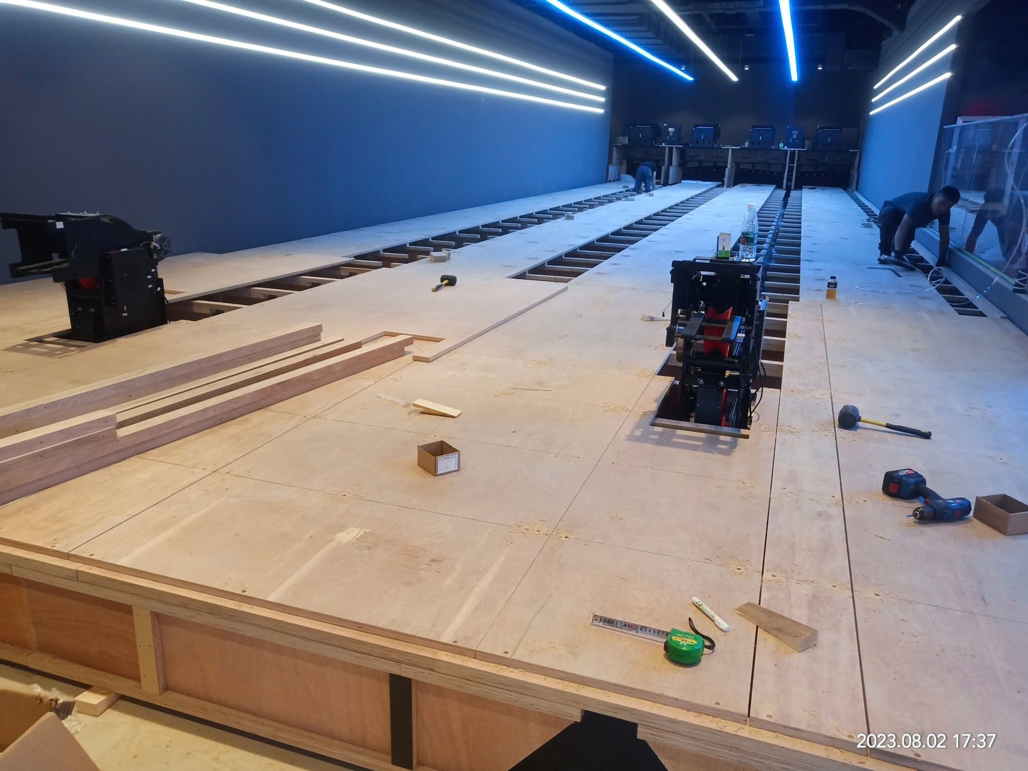 Lắp đặt 2 làn gỗ kèm lớp phủ ánh sáng tổng hợp kèm bảng điều khiển và màn hình