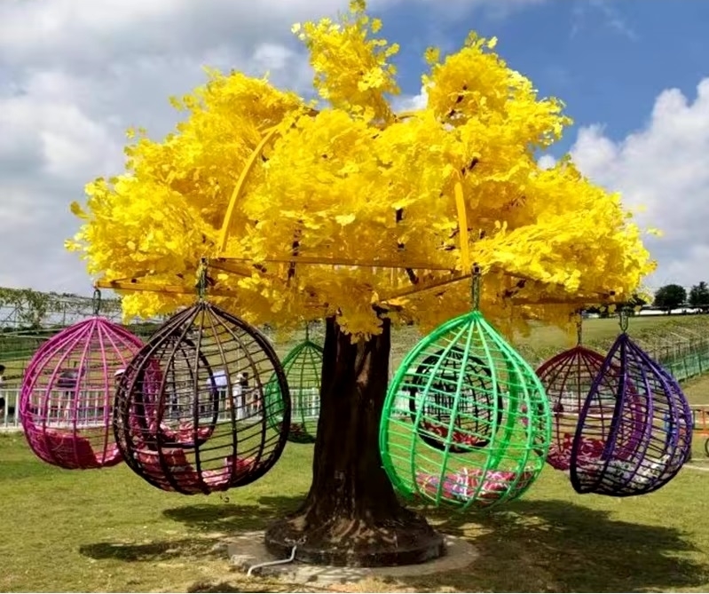 - Với hệ thống đèn LED tích hợp, đu quay và xích đu tạo ra ánh sáng rực rỡ, đặc biệt lung linh vào buổi tối. Ánh sáng có thể điều chỉnh màu sắc và chế độ chiếu sáng, giúp tạo nên bầu không khí sang trọng và vui tươi, phù hợp cho các địa điểm như khu du lịch và trung tâm thương mại.