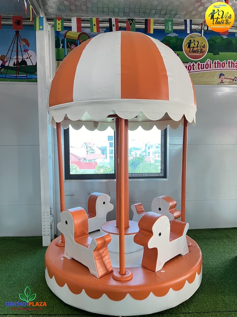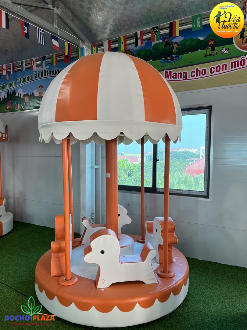 Sản phẩm đu quay ngựa là trò chơi làm nội bật tổng thể khu vui chơi giải trí trong nhà cho bé.