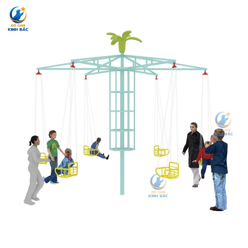 Đu quay ngoài trời nhiều ghế là trò chơi vận động tập thể, thiết kế với trụ trung tâm kết hợp các tay đỡ và ghế ngồi treo xung quanh. Khi vận hành, đu quay tạo chuyển động đung đưa nhẹ nhàng, mang lại cảm giác vui thích và an toàn cho trẻ nhỏ.