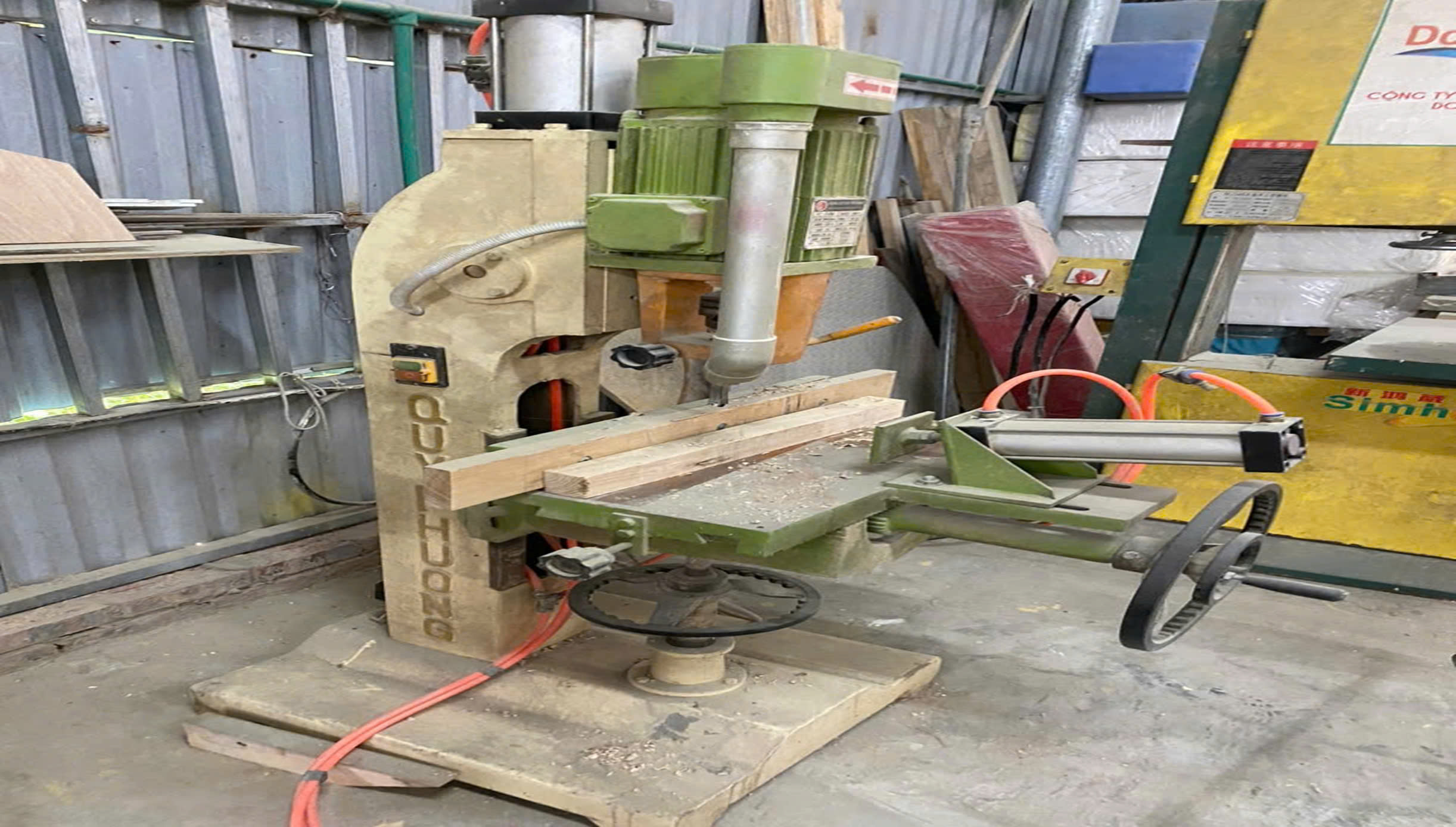 - Máy đục mộng bàn (máy đục mộng đứng): Đây là loại máy công nghiệp thường được sử dụng trong các xưởng gỗ lớn hoặc các nhà máy sản xuất đồ nội thất. Máy đục mộng bàn giúp tạo mộng với độ chính xác cao và có thể xử lý gỗ có kích thước lớn.