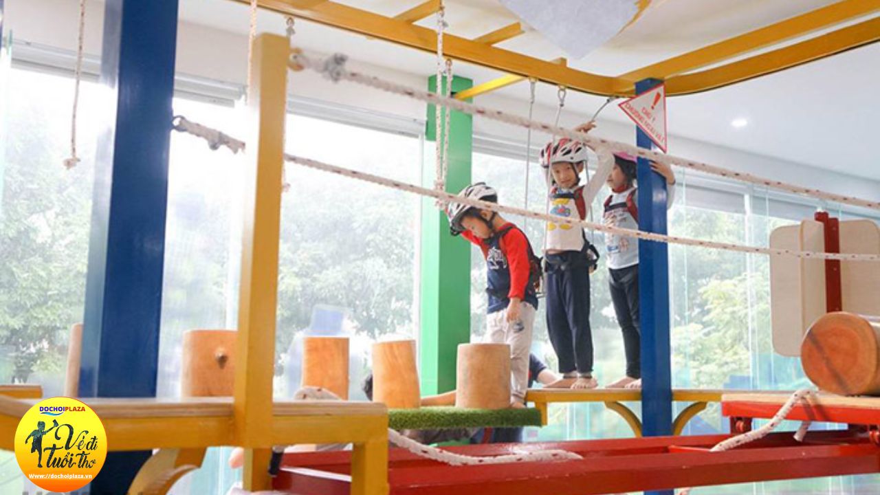 - Cầu trượt, khu leo núi mini giúp trẻ phát triển thể chất.