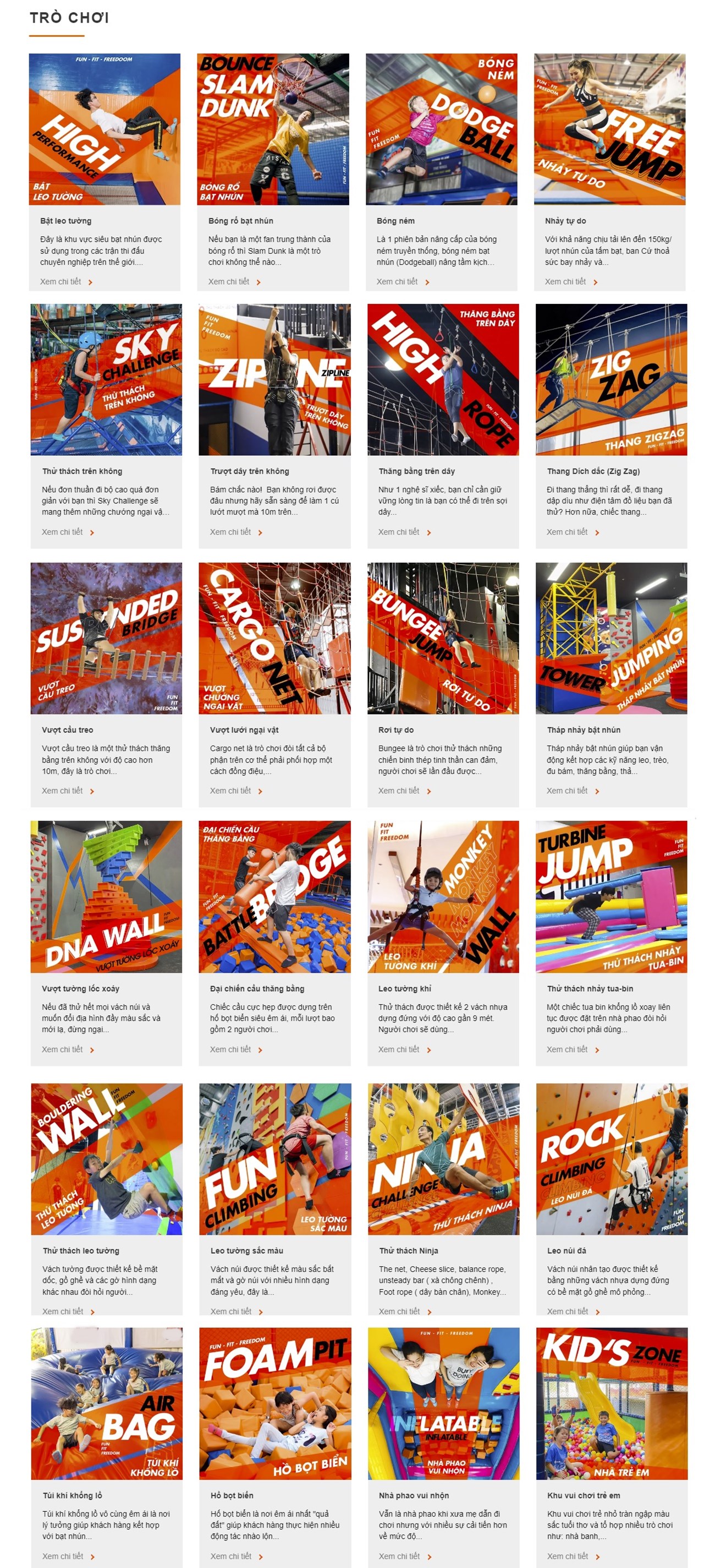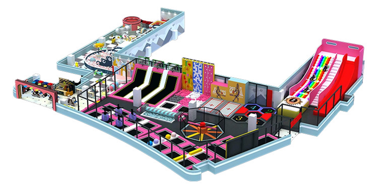 Trampoline park là khu vui chơi bạt nhún trong nhà tiêu chuẩn quốc tế, tích hợp đa dạng các trò chơi và hoạt động trên bạt nhún, cùng những trò chơi vận động như léo núi, vượt chướng ngại vật,…