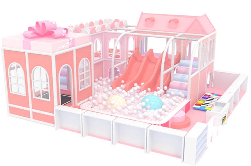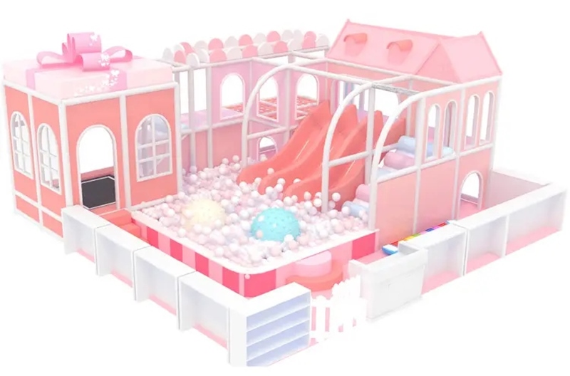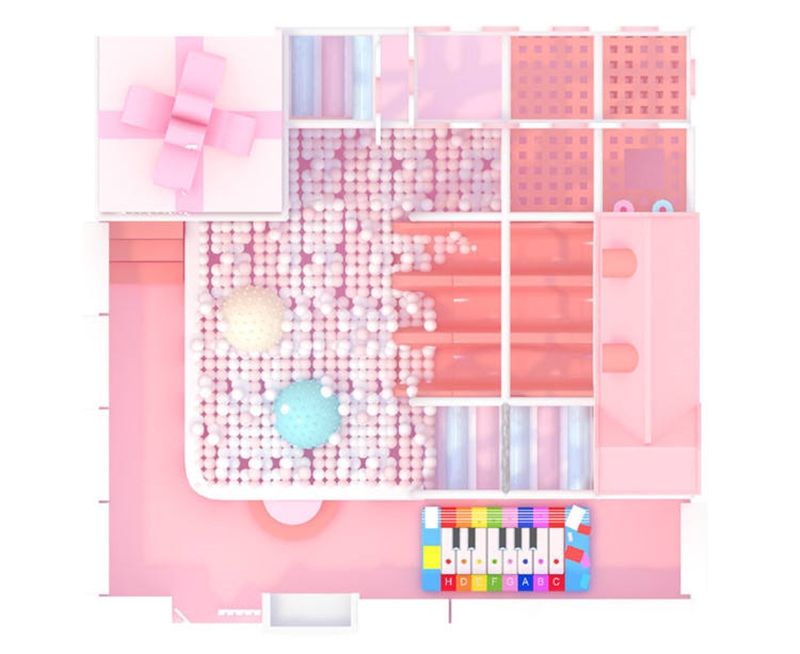 Thông tin chi tiết thiết kế khu vui chơi Cầu trượt nhà bóng mầm non mầu hồng - Indoor playground KVCTE0103