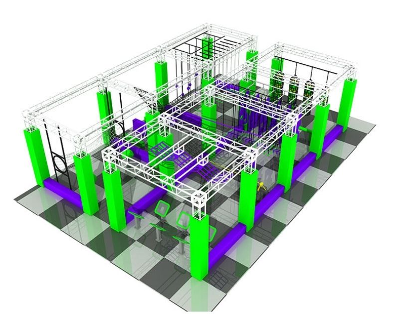 Khu vui chơi vận động Sasuke KBSSK19 lấy cảm hứng từ chương trình Ninja Warrior, mang đến không gian vận động đa thử thách và đầy kịch tính. Thiết kế xanh – tím hiện đại, nổi bật, tạo cảm giác mạnh mẽ và tràn đầy năng lượng, rất phù hợp cho trung tâm thương mại, khu vui chơi gia đình, khu phức hợp thể thao hoặc resort cao cấp.