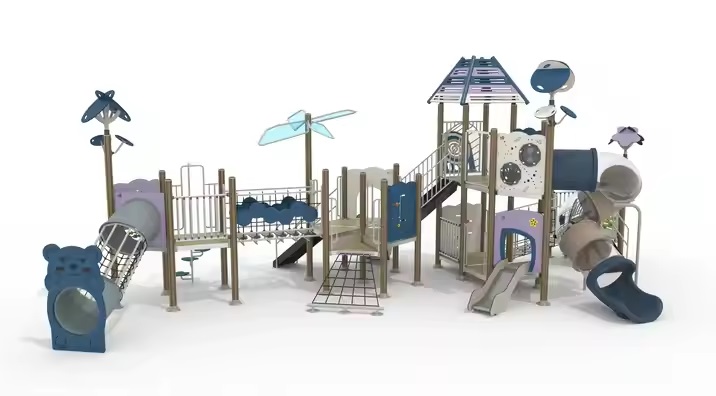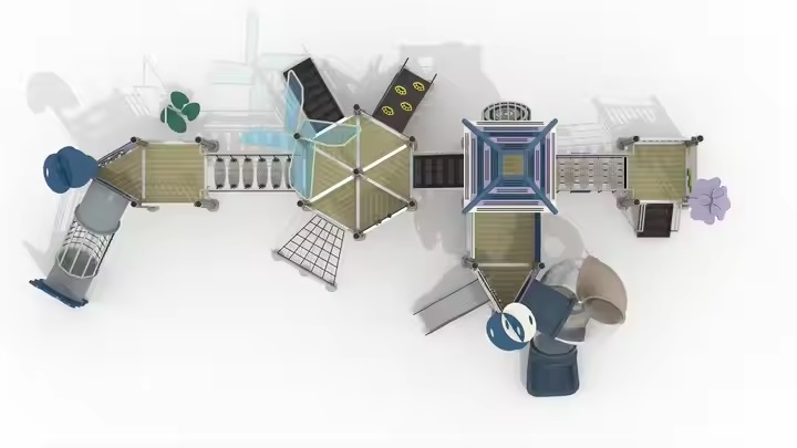 Ngoài cầu trượt và dây thừng, sản phẩm còn kết hợp các trò chơi như vượt chướng ngại vật, leo núi giả lập, và các khu vui chơi sáng tạo khác.
