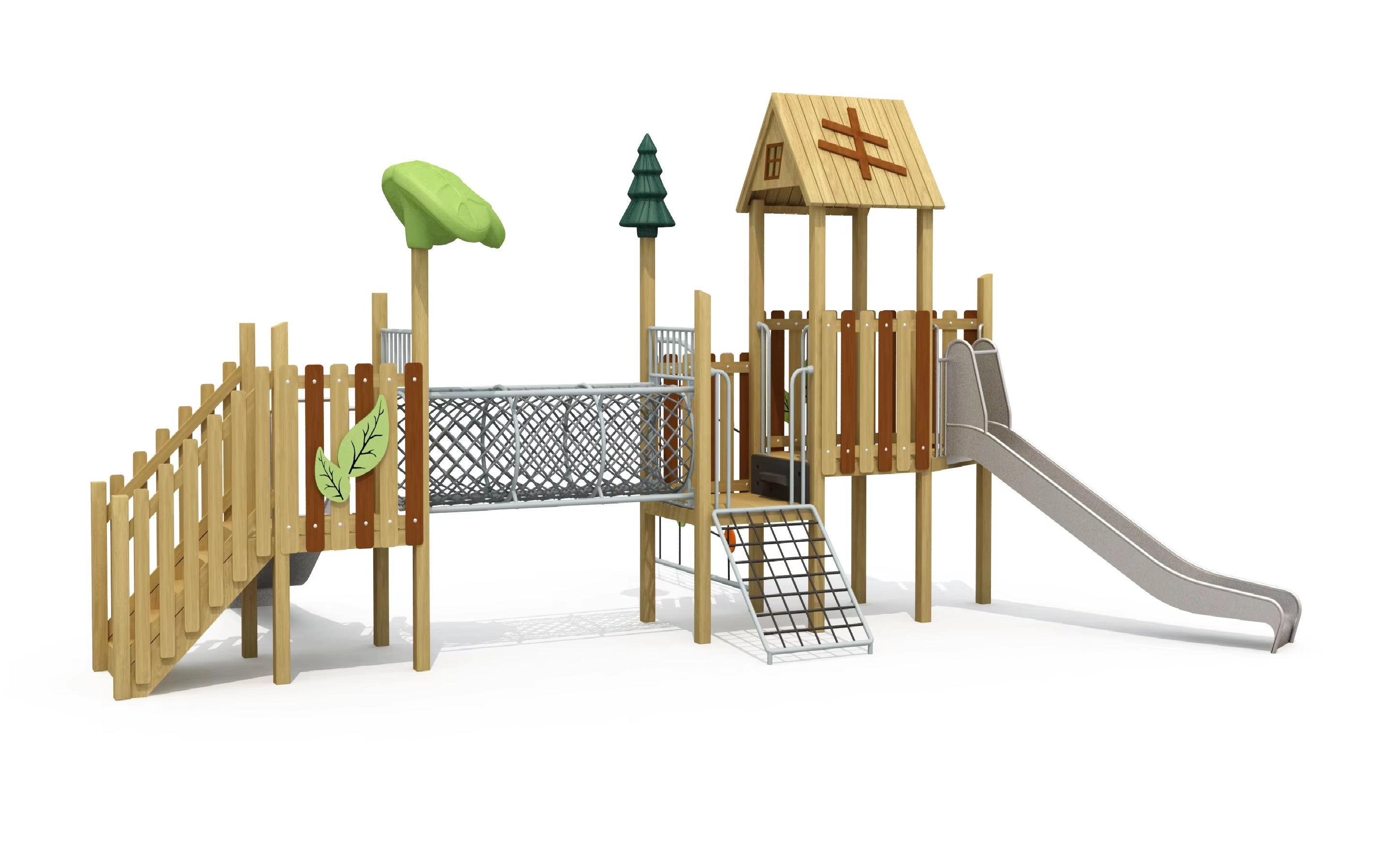 Với sự kết hợp hoàn hảo giữa cầu trượt và hệ thống dây thừng linh hoạt, trẻ sẽ được thử thách bản thân qua các hoạt động leo trèo, giữ thăng bằng và khám phá.