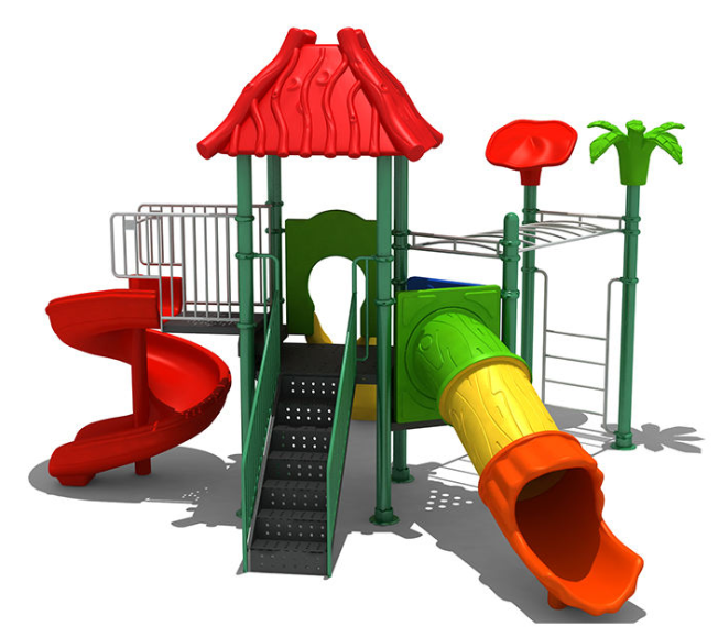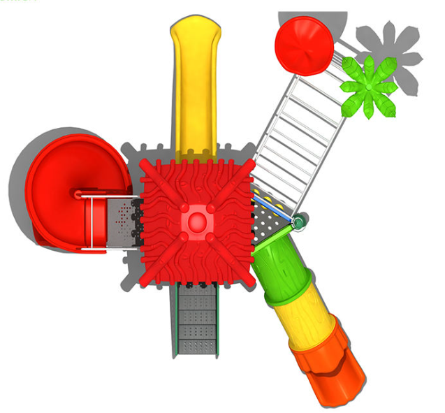 Tổ hợp cầu trượt liên hoàn tích hợp nhiều trò chơi như: máng trượt, leo núi, nhà bóng, đường hầm, xích đu... giúp bé phát triển thể chất, phản xạ và kỹ năng phối hợp.