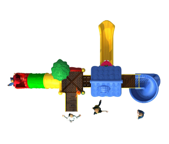 Tổ hợp cầu trượt liên hoàn tích hợp nhiều trò chơi như: máng trượt, leo núi, nhà bóng, đường hầm, xích đu... giúp bé phát triển thể chất, phản xạ và kỹ năng phối hợp.