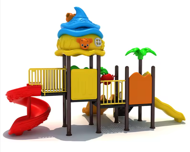 Tổ hợp cầu trượt liên hoàn tích hợp nhiều trò chơi như: máng trượt, leo núi, nhà bóng, đường hầm, xích đu... giúp bé phát triển thể chất, phản xạ và kỹ năng phối hợp.