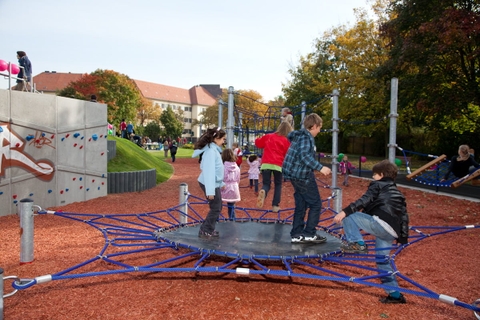 Không chỉ vậy, tấm lưới lớn này còn là nơi lý tưởng để các bé tụ họp, nằm, ngồi, hoặc đứng và nhảy cùng nhau, rèn luyện kỹ năng giao tiếp và tinh thần hợp tác.