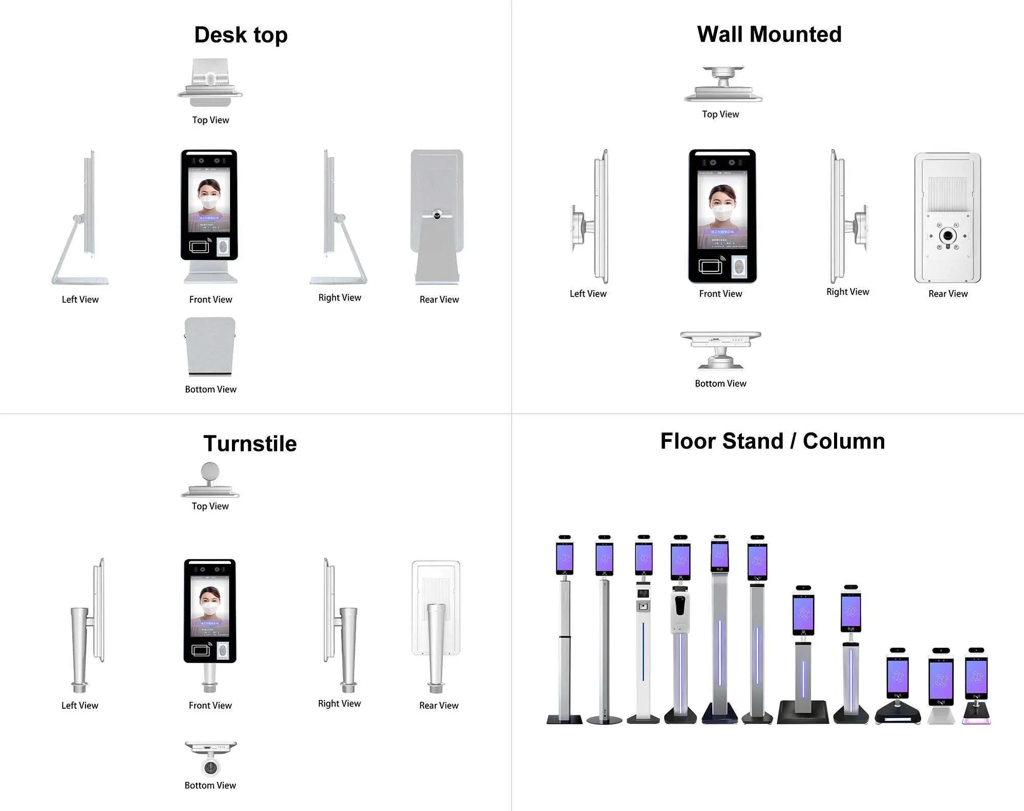 Các thiết bị Kiểm soát ra vào sinh trắc học của chúng tôi bao gồm các hệ thống ra vào không tiếp xúc có khả năng đo nhiệt độ tự động, nhận dạng khuôn mặt, nhận dạng lòng bàn tay, ID vân tay, công nghệ tĩnh mạch ngón tay sống, v.v. Hầu hết các thiết bị sinh trắc học này có nhiều khả năng và có thể được sử dụng với các phương pháp xác minh ID hiện có (Mã QR, Mã vạch, Tiếp xúc không tiếp xúc hoặc Thẻ thông minh). Liên kết Phần mềm Kiểm soát ra vào với nhiều loại Cửa quay và Cổng của chúng tôi. Chúng tôi có thể giúp bạn xác định giải pháp kiểm soát ra vào sinh trắc học nào phù hợp với bạn.