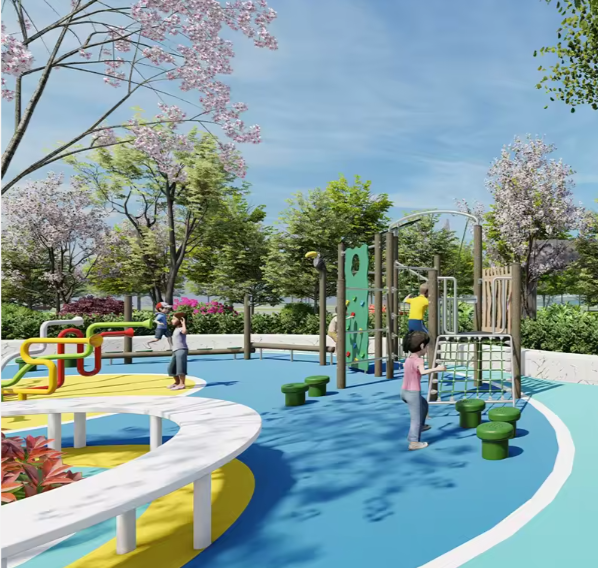 Các khoảng trống được tối ưu để trẻ chạy nhảy, chơi đuổi bắt và vận động nhóm. Cây xanh, ghế nghỉ và lối đi được bố trí hợp lý, tạo sự thoáng rộng cho toàn khu và mang đến sự tiện lợi cho phụ huynh.