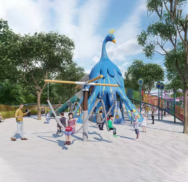 | Tổng quan thiết kế | Kết hợp nhiều khu: cầu trượt liên hoàn – cầu vồng – zipline – xe đạp trên không – vận động nhẹ – cảnh quan |