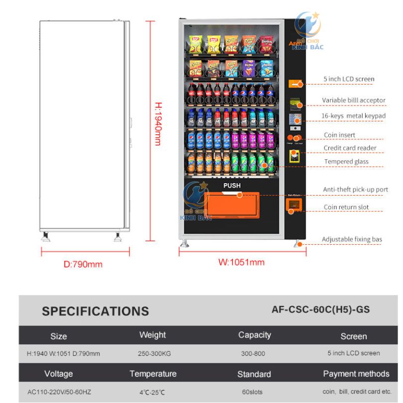 Máy bán đồ uống tự động BHTDKB20 Dochoikinhbac là thiết bị bán hàng tự động hiện đại, chuyên dùng cho các loại nước giải khát đóng chai, đóng lon. Máy hoạt động hoàn toàn tự động 24/7, giúp nhà đầu tư kinh doanh đồ uống không cần nhân sự bán hàng trực tiếp.