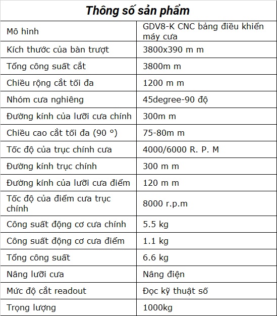 Bảng điều khiển dụng cụ LCD, cưa chính và cưa phụ Tự động điều chỉnh thước Lưỡi cưa điều chỉnh góc Hoạt động tự động của bàn trượt Chùm áp suất khí nén hoàn toàn tự động