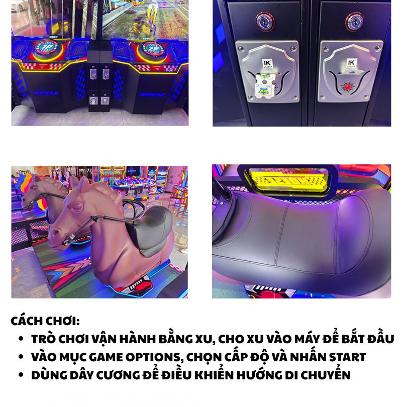 Với thiết kế yên ngựa mô phỏng thật, hệ thống cảm biến chuyển động nhạy, màn hình đôi cực lớn và hiệu ứng ánh sáng – âm thanh sống động, máy mang đến trải nghiệm cưỡi ngựa phi nước đại đầy kịch tính, phù hợp cho cả trẻ em và gia đình.
