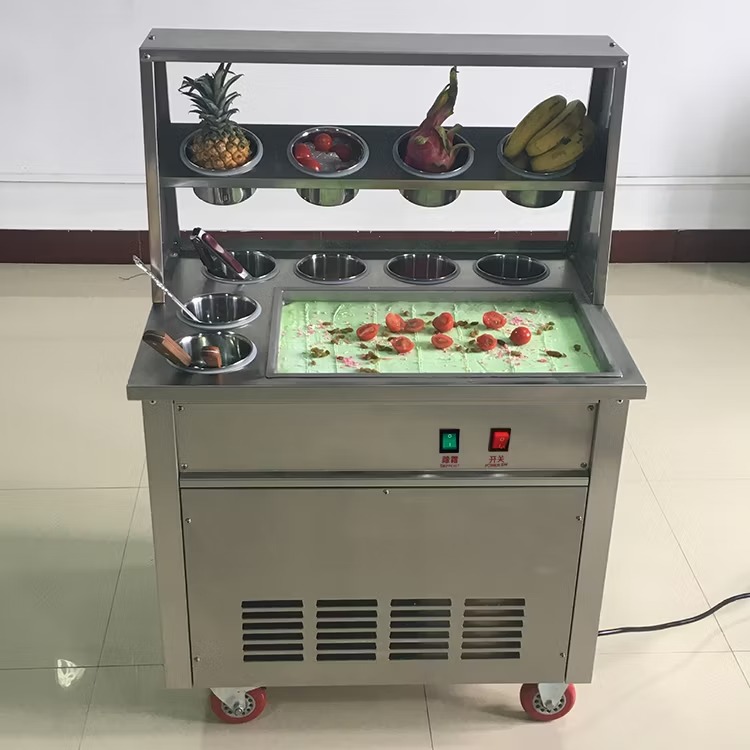 - Tùy chọn nguyên liệu phong phú: Máy làm kem cuộn có thể dùng nhiều loại trái cây, sữa, kẹo, hoặc hạt, giúp khách hàng dễ dàng tùy chỉnh hương vị theo sở thích. Sự đa dạng này khiến máy làm kem cuộn trở thành lựa chọn linh hoạt, phù hợp với nhiều khách hàng khác nhau.
