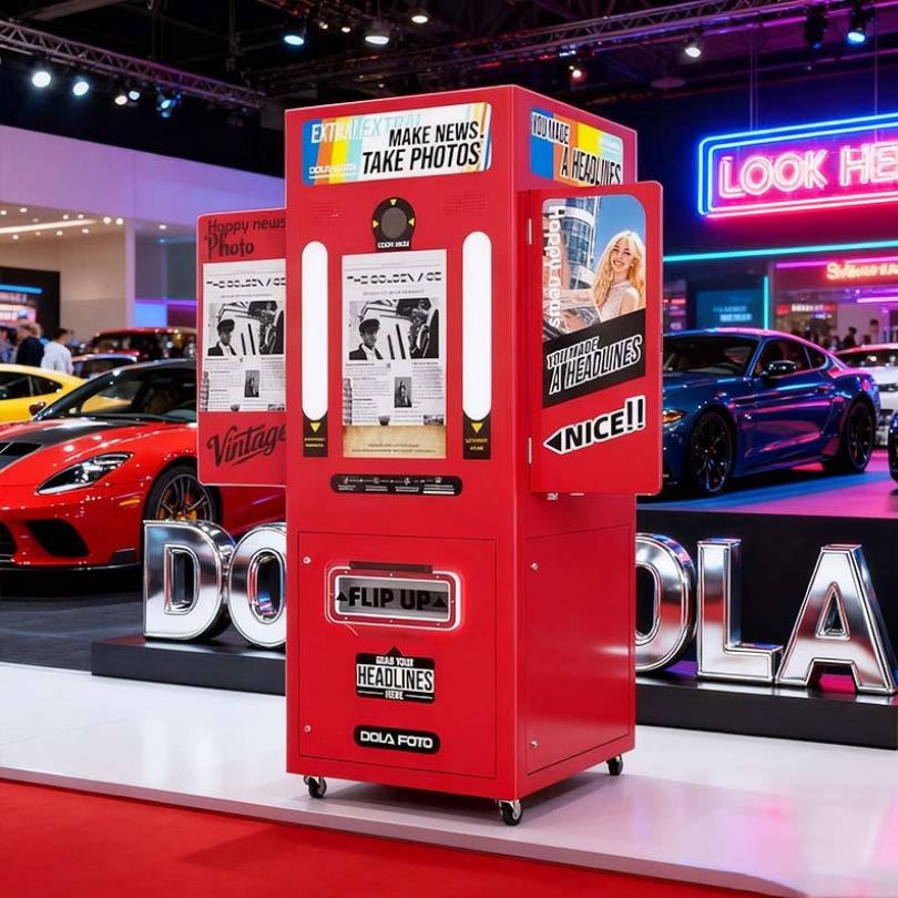 Máy Photo Booth Hàn Quốc PTBKB02 phiên bản màu đỏ mang phong cách “headline magazine” độc đáo – tạo cảm giác như bước vào một quầy báo thời thượng giữa trung tâm thương mại. Thiết kế ấn tượng, bảng màu rực rỡ và hiệu ứng ảnh đẹp mịn chuẩn Hàn giúp PTBKB02 trở thành điểm check-in nổi bật, thu hút giới trẻ và gia đình ngay từ xa.