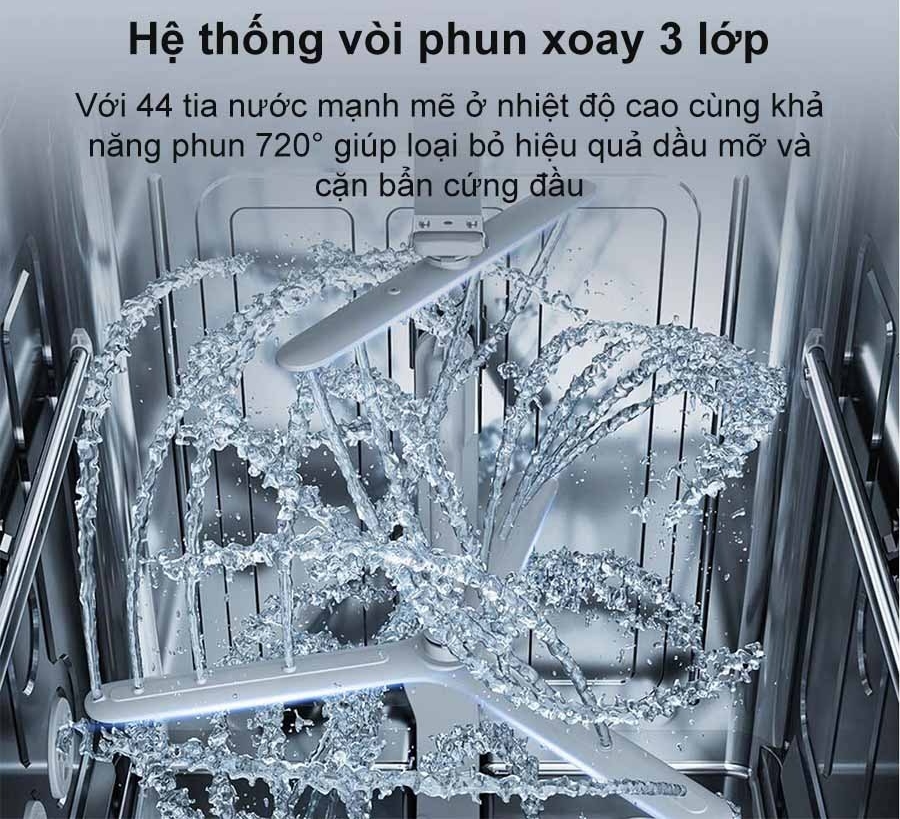 - Hệ thống vòi phun đa chiều 360°, loại bỏ dầu mỡ, vết bẩn cứng đầu.
