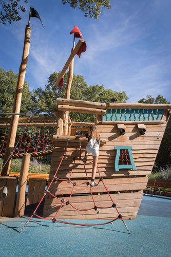 Khi tham gia các hoạt động trên tàu, trẻ sẽ rèn luyện được nhiều kỹ năng vận động quan trọng như sự cân bằng và phối hợp. Không gian chơi dưới boong tàu còn cho phép các bé có những phút giây thư giãn, trong khi các chi tiết như đại bác, ống nhòm và bánh lái trên boong tàu sẽ khơi gợi trí tưởng tượng, giúp trẻ tạo ra nhiều câu chuyện và kịch bản chơi thú vị.