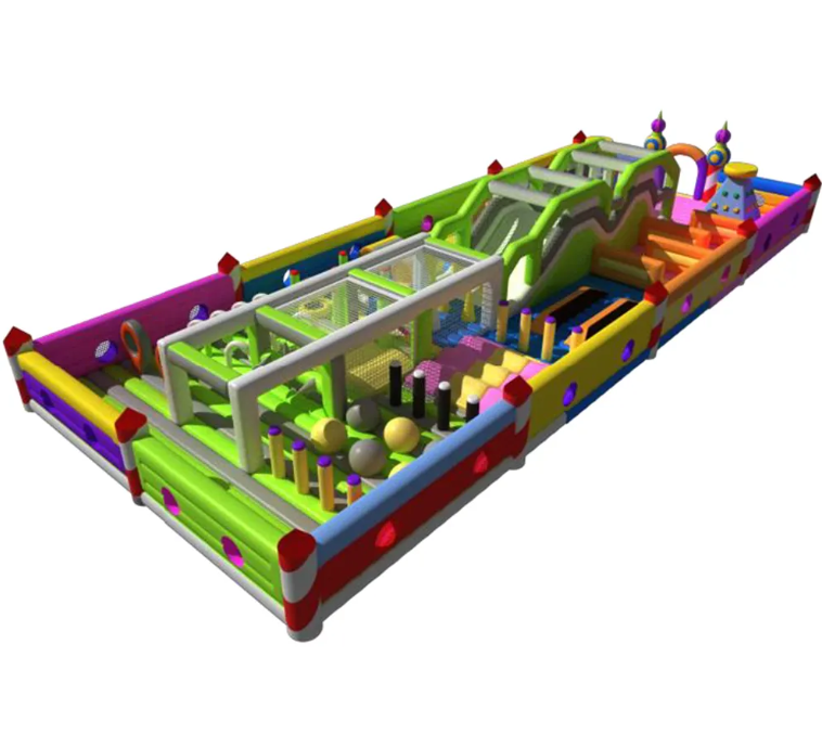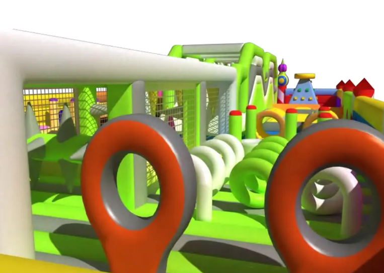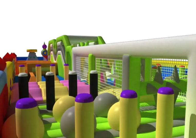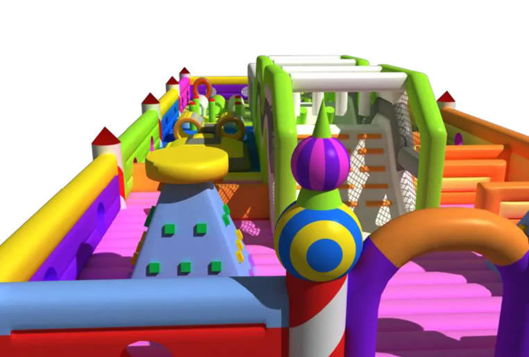 Thiết kế liên hoàn: Bao gồm các khu vực chơi như cầu trượt, hố bóng, mê cung, nhà chui, vật cản... giúp trẻ vận động toàn diện.