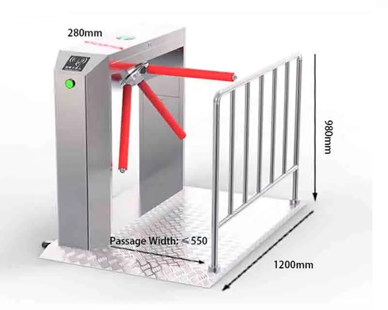 Giải phóng kiểm soát ra vào: khi đèn báo của máy kiểm tra chuyển sang màu xanh lá cây và còi không còn reo nữa, máy kiểm tra có thể đi qua cổng xoay ba chân và cổng xoay ba chân sẽ khóa lại sau thời gian đã đặt (thường là 5 giây).
