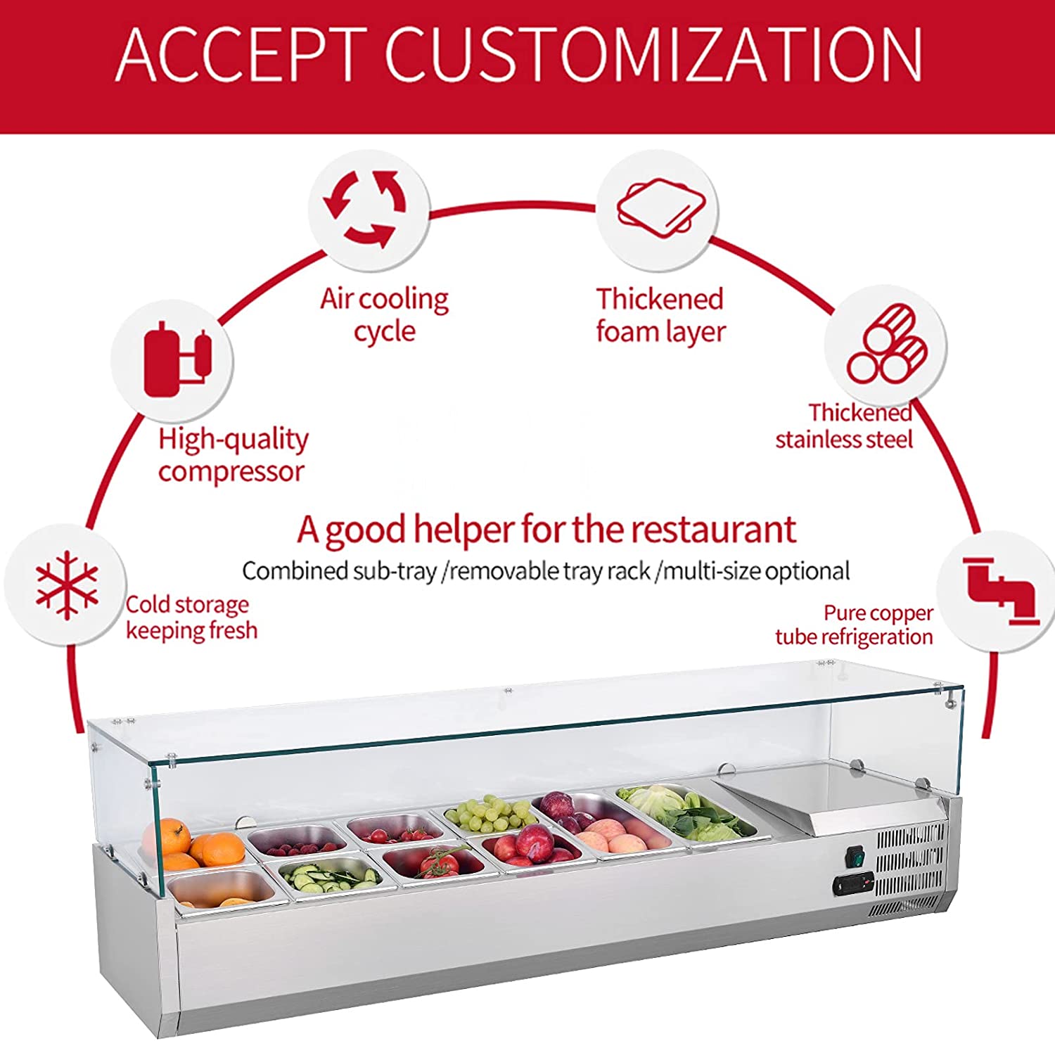 - Duy trì chất lượng sản phẩm: Nhờ khả năng duy trì nhiệt độ phù hợp, quầy tủ lạnh giúp bảo quản hoa quả và salad mà không làm mất đi hương vị hay chất lượng dinh dưỡng của sản phẩm.