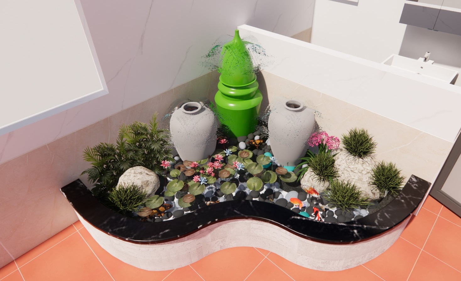 ✅ Đặt bể cá nhỏ, thác nước phong thủy hoặc hồ nước nhỏ nếu có điều kiện.