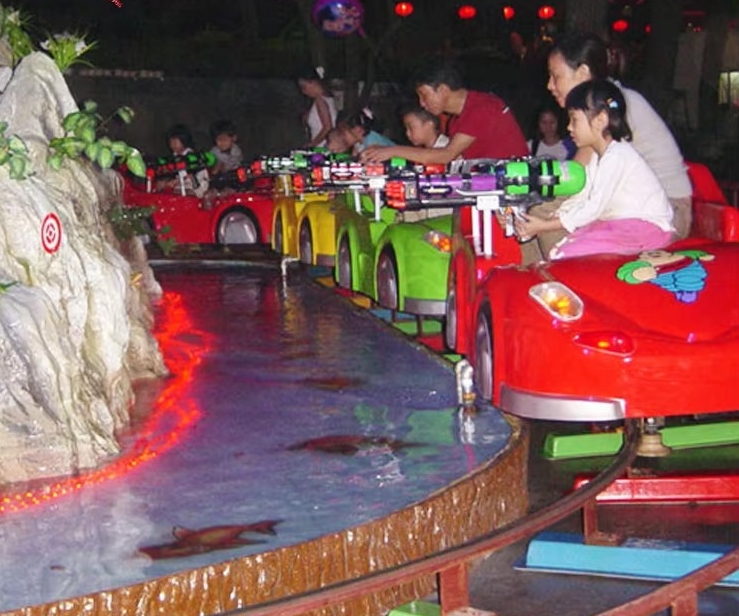Khi tham gia trò chơi, người chơi sẽ ngồi trên tàu điện mini, được thiết kế riêng biệt với các ghế ngồi thoải mái, đồng thời sẽ có súng bắn nước để chiến đấu. Tàu di chuyển trên một tuyến đường ray cố định, và trong suốt chuyến đi, người chơi sẽ phải nhắm mục tiêu và bắn súng vào những đối tượng hoặc những mục tiêu mà trò chơi đặt ra. Những mục tiêu này có thể là các đối thủ cạnh tranh hoặc các đối tượng được đặt dọc theo đường ray.