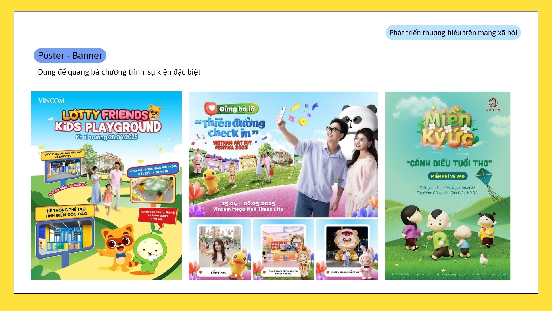 Bài đăng Facebook được thiết kế sẵn theo phong cách thương hiệu, phục vụ cho việc truyền thông khai trương, ưu đãi, thông báo sự kiện. Hình ảnh đồng bộ giúp fanpage khu vui chơi trông chuyên nghiệp và đáng tin cậy hơn.